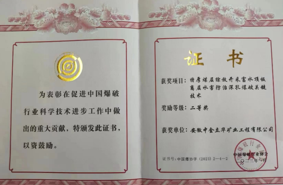 安徽立华荣获中国爆破行业协会科学技术奖二等奖