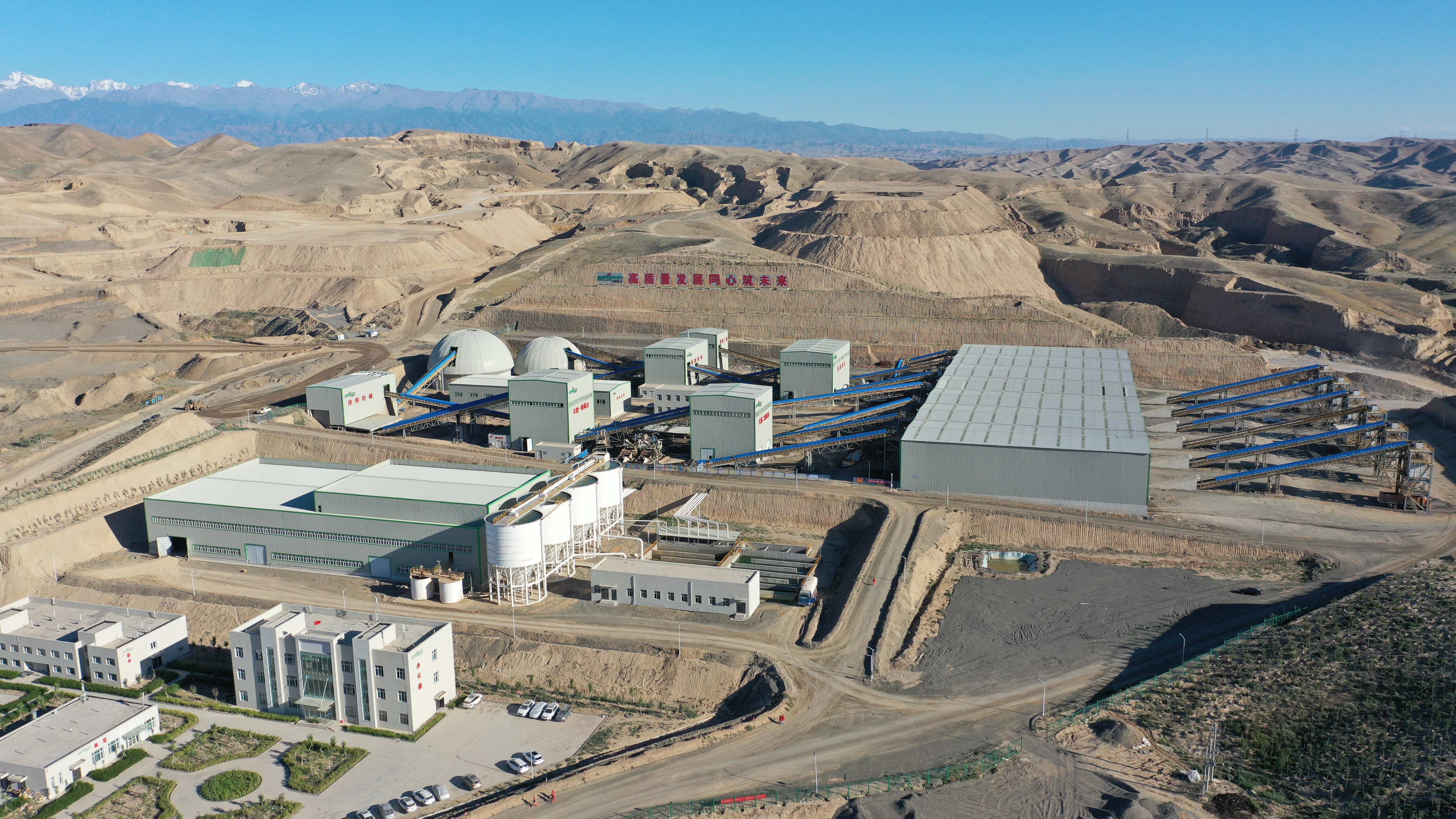 新疆易泰建设有与矿山经营配套的规模化、智能化、生态化的砂石骨料生产线4条,生产能力为每小时2000吨,配套建设有10万吨储量的智能装车系统的成品库和零排放环保水处理区,其中安全环保设施投入2000多万元,通过视频监控、中央控制系统、安全联锁装置等手段有效地提升生产过程的本质安全水平。